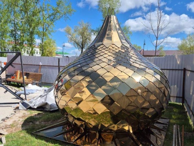 На памятнике архитектуры XIX века завершена установка освящённого купола и креста. Уже сняты строительные леса, заменена брусчатка, ведутся финальные внутренние работы.