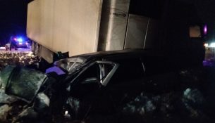 Сегодня на 320-м километре федеральной автодороги Тюмень — Омск в Ишимском районе произошло столкновение между большегрузом «Вольво» и автомобилем «Тойота Виш». По предварит...