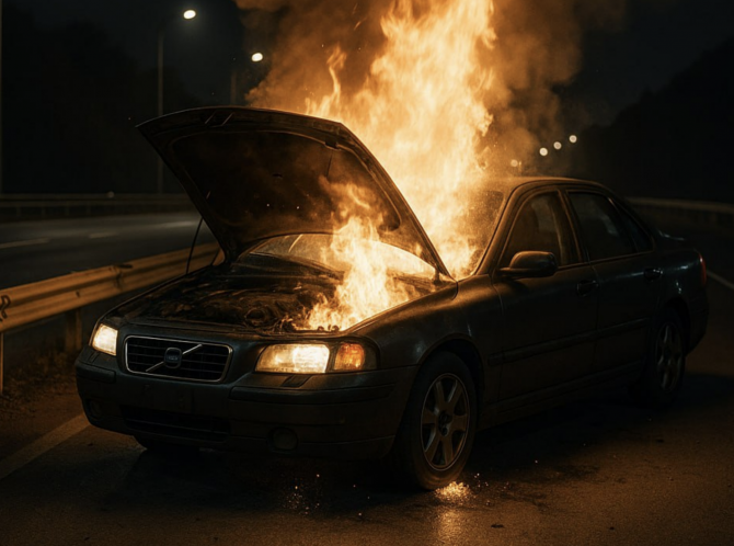 На 32-м километре Объездной дороги в Тюмени загорелся автомобиль Volvo. Огонь охватил моторный отсек, площадь возгорания составила около двух квадратных метров.