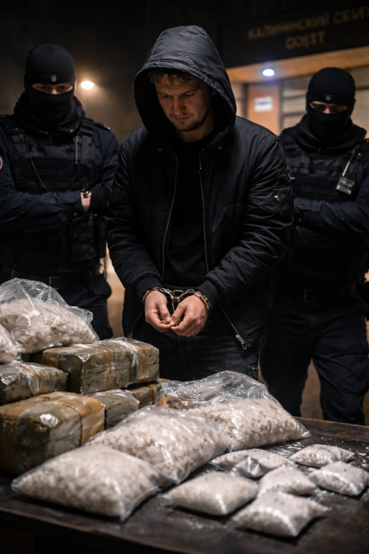 По версии следствия, в октябре 2025 года обвиняемый через интернет вступил в сговор с неизвестными кураторами и занялся распространением наркотиков на территории города. Его задачей было оборудование тайников с «синтетикой», однако завершить работу он не успел — курьера задержали сотрудники полиции.