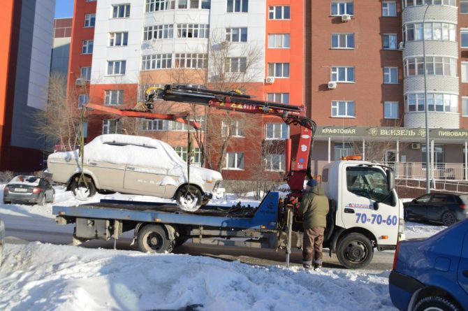 В Восточном административном округе Тюмени продолжают жёстко разбираться с брошенными автомобилями. 5 февраля на улице Николая Семёнова, 29, корпус 1 провели принудительное перемещение машин, мешавших уборке снега и работе дорожной техники.