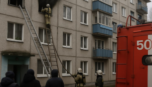 В Ишиме пожарные спасли людей из горящей квартиры...