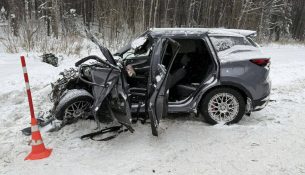 Не успела затормозить: Nissan врезался в тепловоз на переезде в Тюмен...
