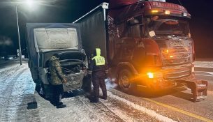 Тюменские инспекторы ДПС помогли водителю большегруза, замерзающему на...