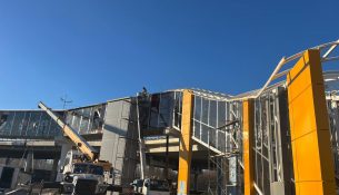 В Тюмени продолжается реконструкция надземного перехода на улице Мориса Тореза. Рабочие уже установили металлические конструкции лестниц и лифтовых шахт, утеплили их, выполнили малярные работы и обус...