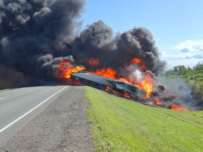 На 563-м километре автодороги Тюмень — Омск произошло тяжелое ДТП с участием двух грузовиков. По предварительным данным, столкновение спровоцировало возгорание техники, в результате которого погибли оба водителя.
