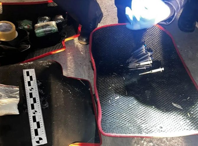 Под передним пассажирским сиденьем правоохранители обнаружили прозрачный пакет с белым веществом и 13 шприцев. Ещё четыре свёртка, перемотанных скотчем, нашли в спортивной сумке молодого человека. Прибывшая следственно-оперативная группа изъяла находки и направила их на экспертизу.