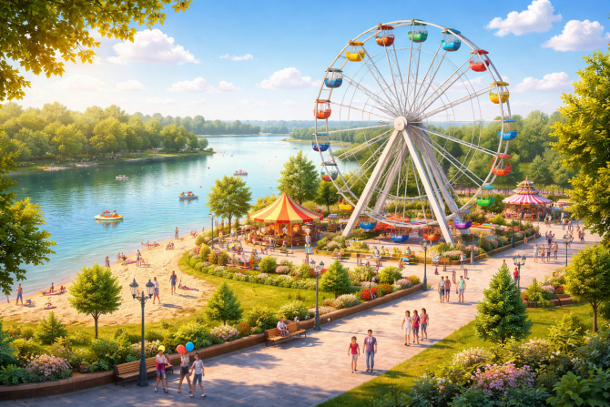 В Тюмени может появиться новая точка притяжения — у озера Круглое планируют обустроить современную зону отдыха с аттракционами и колесом обозрения. Проект обсуждают городские власти.