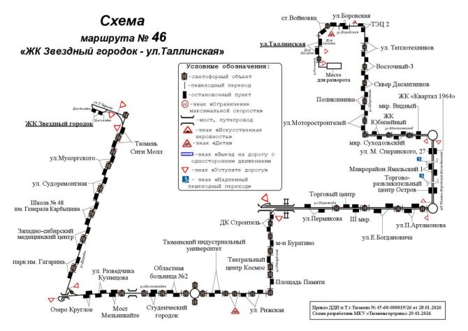 С 14 февраля в Тюмени скорректируют схему движения автобусного маршрута № 46, следующего от ЖК «Звёздный городок» до улицы Таллинской. Изменения затронут перечень остановочных пунктов.