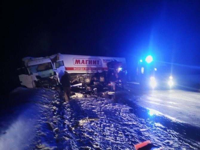 По предварительным данным, на участке дороги столкнулись сразу три автомобиля — два большегруза и внедорожник «Тойота Ланд Крузер». Удар оказался настолько мощным, что избежать жертв не удалось.