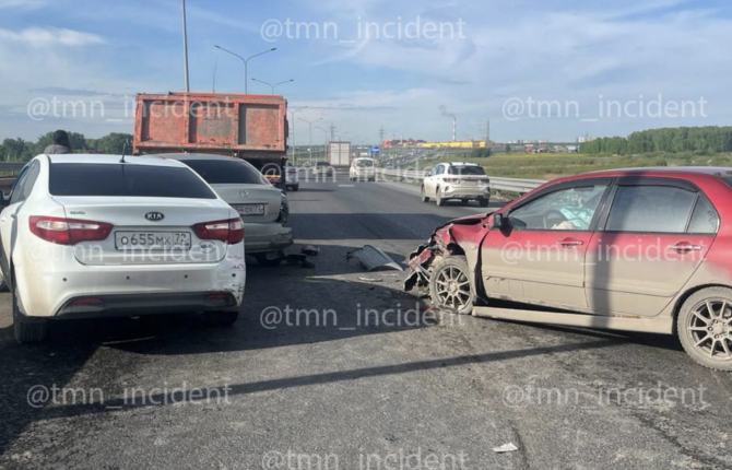 На объездной дороге под Тюменью произошло серьёзное ДТП с участием трёх автомобилей