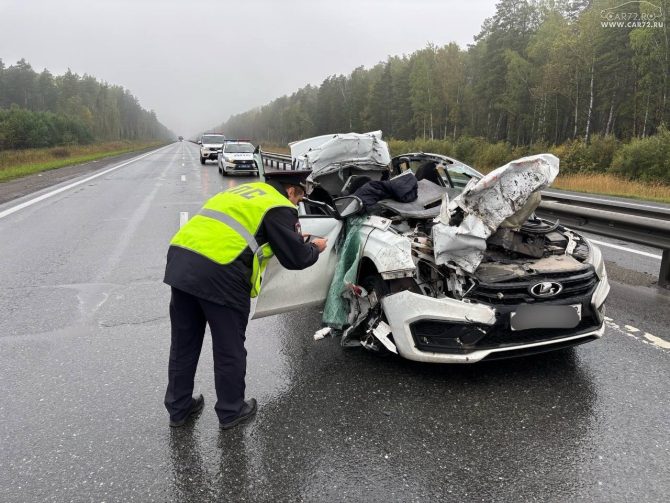 На 252-м километре трассы Екатеринбург — Тюмень произошло серьезное ДТП с участием легкового автомобиля и грузовика. По предварительным данным, 25-летний водитель «Лады Весты» на большой скорости не выдержал дистанцию и совершил столкновение с груженым «Mercedes».