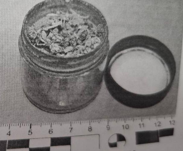 В присутствии понятых из кармана кофты, принадлежавшей подозреваемому, была изъята колба с четырьмя полимерными свёртками растительного вещества. Кроме того, ещё одну ёмкость с запрещённым веществом полицейские обнаружили в сумке мужчины.