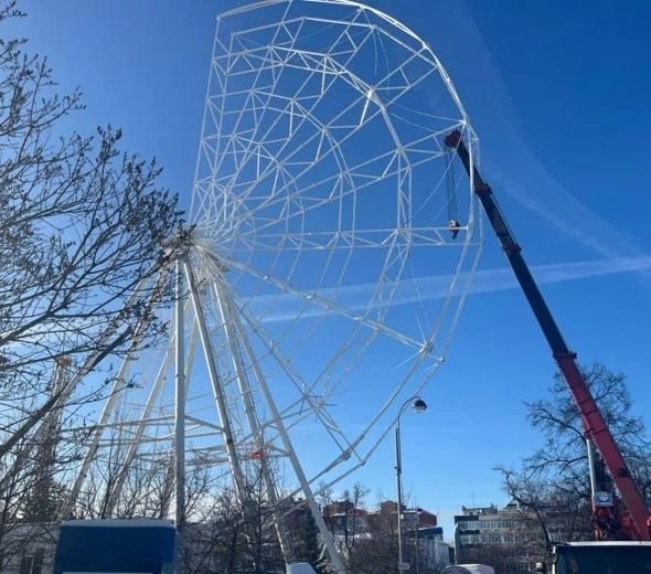 Колесо ранее демонтировали в феврале — тогда на его месте устанавливали инсталляцию ко Дню города. После завершения праздничных мероприятий аттракцион решили вернуть на привычное место.