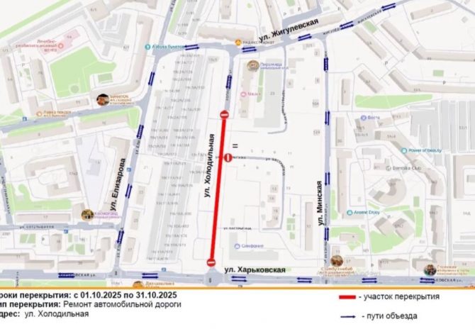 Для объезда ремонтируемого участка автомобилистам рекомендовано использовать улицы Харьковскую, Елизарова и Минскую. Дорожные работы проводятся в рамках подготовки городской инфраструктуры к зимнему сезону.