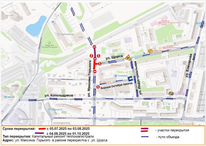 Объехать перекрытые участки можно по улицам Котельщиков, Индустриальной и проезду Борцов Октября. Водителям рекомендуется заранее планировать маршрут.