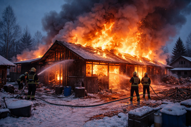 Ранним утром 7 января в посёлке Новокаменский Тюменского муниципального округа вспыхнул пожар на улице Менделеева. Около четырёх часов утра огонь охватил хозяйственную постройку и быстро начал распространяться внутри здания.