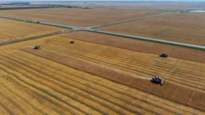 На 27 октября тюменские полеводы обмолотили 629,2 тысячи гектаров и намолотили 1 миллион 862,8 тысячи тонн зерна при средней урожайности 30 центнеров с гектара.