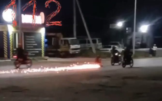 Группа подростков в поселке Барабаш (Приморский край) устроила опасное развлечение, привязав к мопеду металлическое корыто и устроив ночные гонки с огнем. По данным очевидцев, участники акции проезжали по улицам с горящим объектом, создавая риски возгорания и нарушения общественного порядка. Инцидент вызвал возмущение местных жителей, чей ночной покой был нарушен шумом и потенциальной опасностью.