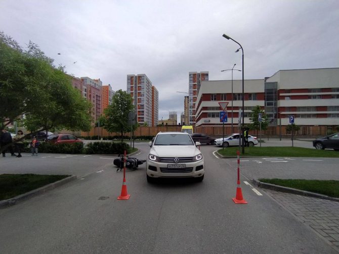 На ул. Эрвье, 30 в Тюмени произошло ДТП с участием 16-летнего юноши на электроскутере мощностью 2000 Вт и автомобиля Volkswagen. Подросток получил травмы.