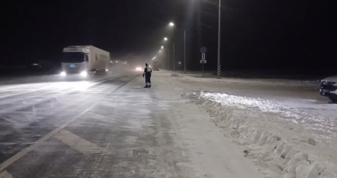 Метель и порывистый ветер на трассах Тюменской области. ГАИ контролирует движение авто