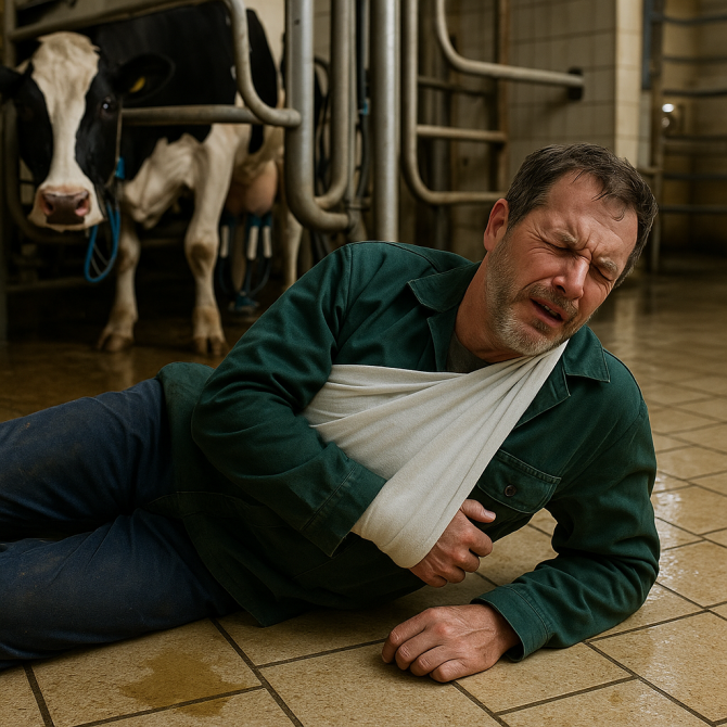 Нижнетавдинский районный суд рассмотрел иск прокурора в интересах рабочего животноводческой фермы ООО «ПК „Молоко“». Олег Ф., выполняя свои обязанности на территории комплекса в селе Киндер, поскользнулся на мокром кафеле и упал, получив перелом ключицы.
