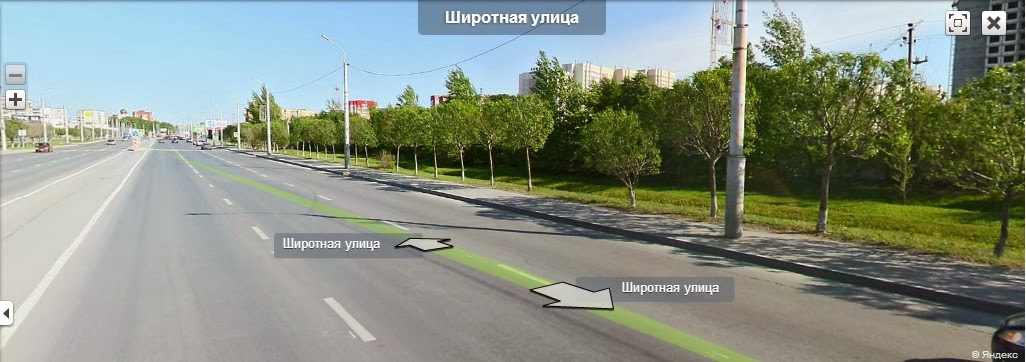 Обратите внимание на положение пешеходного тротуара на шестиполосной ул. Широтной. Хождение по краю пропасти.
