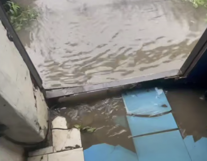 Вчерашний ливень превратил улицы Тюмени в стихийное бедствие. На улице Судостроителей, 25 потоки воды практически полностью разрушили отмостку жилого дома, создав угрозу фундаменту.