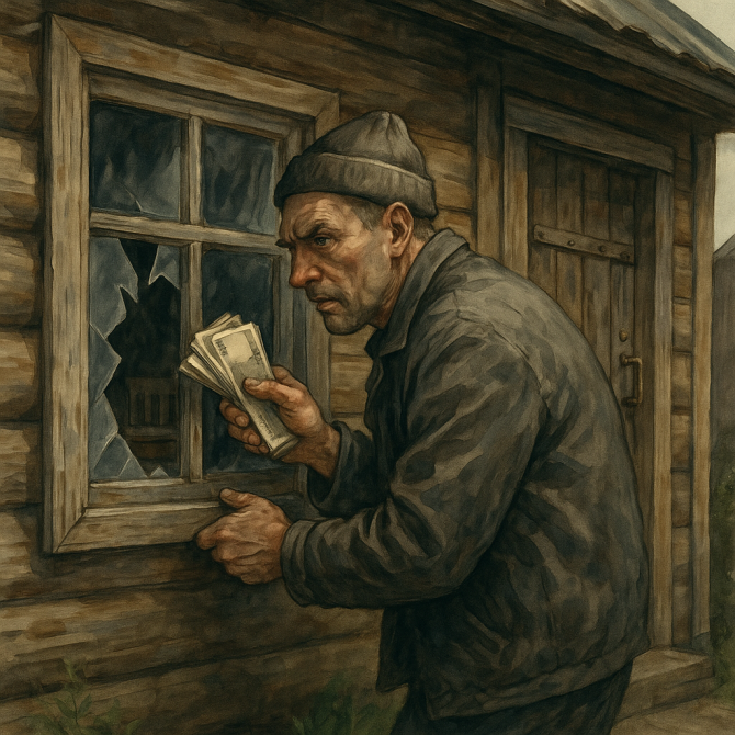 Инцидент произошёл 28 апреля в деревне Гагарино. Мужчина, решивший, что его пассия вернулась к бывшему, выследил дом с помощью прохожих, выставил стекло в окне и проник внутрь. Вместо любимой он нашёл лишь деньги — 6 780 рублей, которые сразу потратил.
