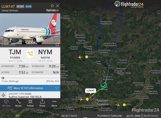 Самолет, выполнявший рейс из Тюмени в Надым, столкнулся с птицей во время взлета. Экипаж принял решение продолжить полет, однако при наборе высоты были обнаружены неполадки и неравномерное распределение топлива между баками. В итоге самолет был вынужден вернуться в аэропорт Рощино. После осмотра воздушное судно было отстранено от полетов.