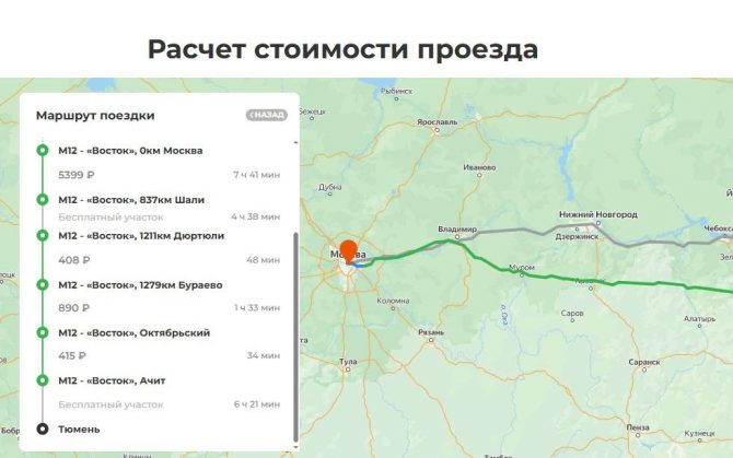 Время в пути по платной трассе составит 21 час 34 минуты, в то время как по бесплатной дороге потребуется более суток. Маршрут проходит через регионы Центральной России, Республику Башкортостан, Пермский край и Свердловскую область.