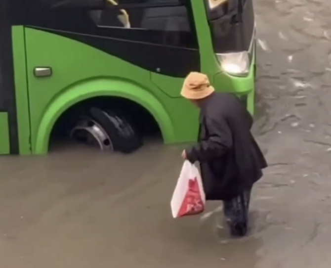 Видео с пенсионеркой, бредущей по колено в воде у остановки на улице Мельникайте, вызвало волну возмущения в соцсетях. В разгар ливневого потопа женщина в светлой шляпке пыталась уехать домой, но водители нескольких автобусов отказались открывать двери, опасаясь залить салон. Бабушка, переходя от одной машины к другой, в отчаянии кричала: «Почему не пускаете?!» — но так и не смогла сесть в транспорт.