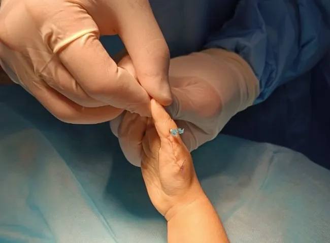В клинико-диагностическом центре «Нефтяник» успешно провели сложнейшую операцию двухлетней пациентке со слипшимися пальцами (синдактилией). Теперь малышка проходит реабилитацию, чтобы научиться пользоваться полностью разделёнными пальчиками.