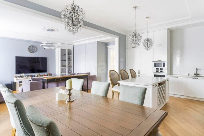 Жильё включает две спальни, кухню-гостиную площадью 48 квадратных метров, кладовую, гостевой санузел и отдельную ванную комнату, примыкающую к хозяйской спальне. Среди преимуществ продавец отмечает трёхметровые потолки, ремонт по дизайн-проекту и «необычно низкие для домов подобного уровня» коммунальные платежи.