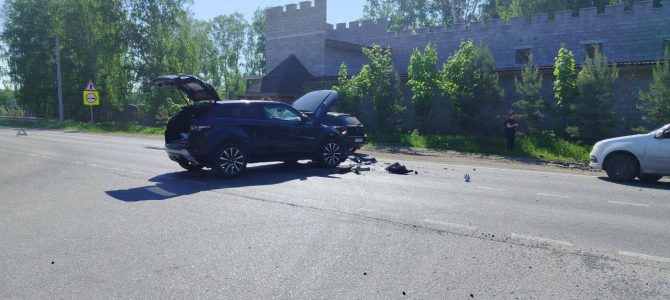 Сегодня в поселке Решетниково произошло серьезное ДТП — в результате столкновения двух легковых автомобилей один из них вылетел с проезжей части и врезался в здание.