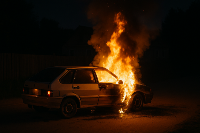 Пожар произошёл поздно вечером в Исетском районе: в 23:37 загорелся автомобиль «ВАЗ-2114».