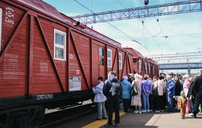 13 июня на железнодорожный вокзал Тюмени прибудет агитпоезд «Единство в памяти. Сила в подвиге!», организованный Минобороны РФ. В составе — тематические вагоны с макетами боевой техники времён Великой Отечественной, рассекреченные документы и экспозиции, посвящённые подвигам бойцов СВО.