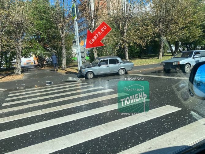 В Тюмени автомобиль ВАЗ протаранил светофор на перекрестке Республики — Новаторов