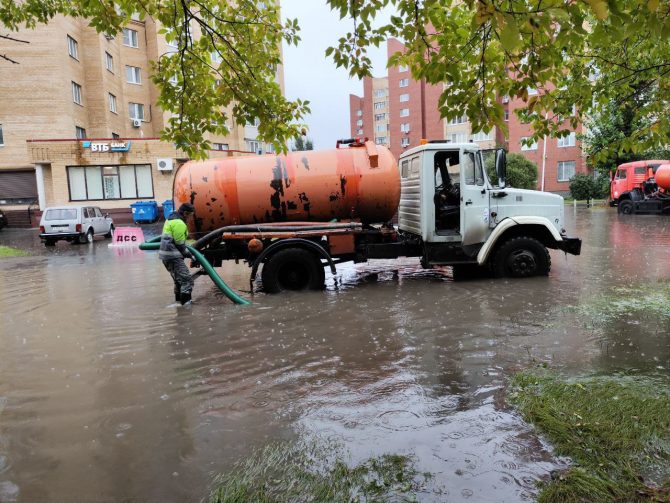 Городские службы Тюмени продолжают ликвидировать последствия сильных дождей в различных районах города. На улицах работают 57 единиц спецтехники. ДРСУ-1 проводит откачку воды на улице Ватутина, у дома №215 по улице Широтной и на других участках, пострадавших от затопления.