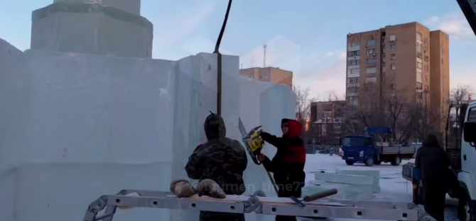 В областной центр привезли партии льда и целую команду профессиональных скульпторов из Екатеринбурга. Мастера уже возводят фигуры и элементы будущего городка: горки, лабиринты и необычные линзы-чаши.