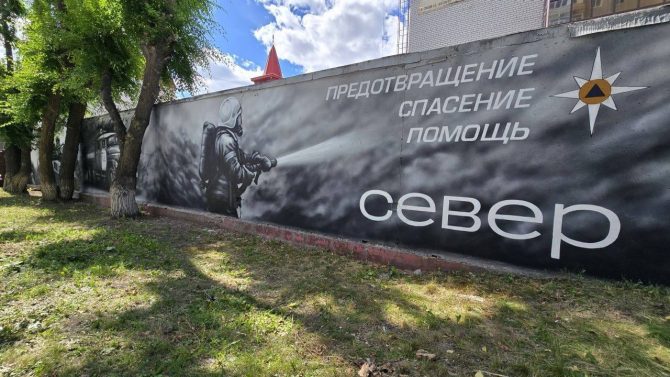 На фасаде здания возле пожарно-спасательной части №14 на улице Максима Горького в Тюмени появился масштабный мурал, посвященный героям МЧС. Проект реализован при поддержке администрации Центрального округа, ГУ МЧС России по Тюменской области и компании «Север».