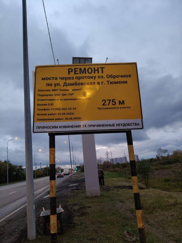 С 30 сентября жизнь автомобилистов в Тюмени станет сложнее: на улице Дамбовской у моста через протоку озера Оброчное вводят серьёзные ограничения.