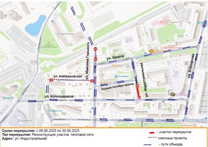 Водителям рекомендуют использовать объездные маршруты: улицы Борцов Октября, Харьковскую и Елизарова. Планируйте маршрут заранее, чтобы избежать пробок.