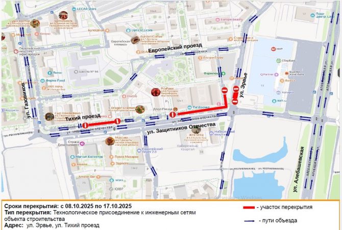 В Тюмени в связи со строительством тепловой сети для нового жилого комплекса ограничено движение транспорта на участке Тихого проезда в районе домов № 4 и № 32 корпус 1 по улице Ю.-Р.Г. Эрвье. Ограничение действует с 8 по 17 октября 2025 года. Объезд возможен по улицам Защитников Отечества, Алебашевской и Газовиков.