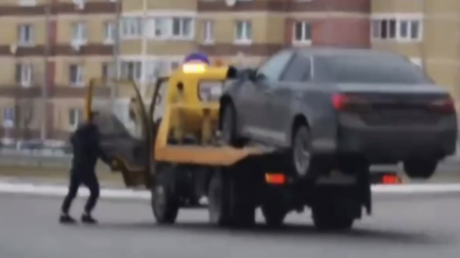 Однако без повреждений, похоже, не обошлось — авто уже успело «коснуться» платформы и ударилось при сползании.