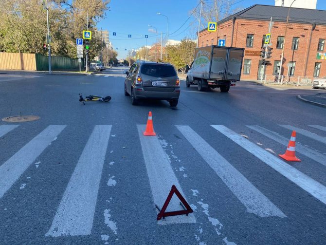 В центре Тюмени, на улице Свердлова, 17-летняя девушка, управлявшая электросамокатом, столкнулась с автомобилем «Тойота». По предварительным данным, самокатчица пересекала проезжую часть по пешеходному переходу на зеленый сигнал светофора, не спешившись. 49-летний водитель «Тойоты» утверждает, что двигался на желтый сигнал.