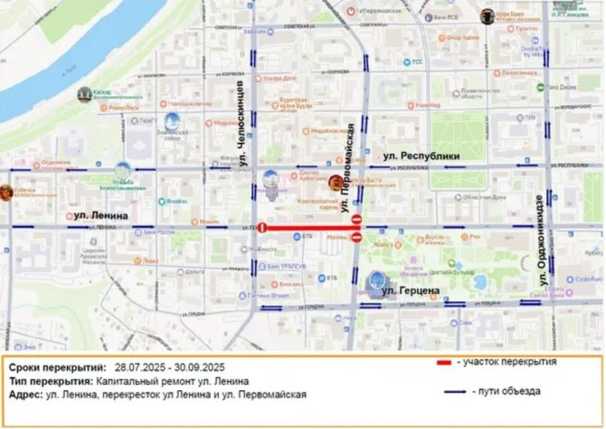 С 28 июля по 30 сентября в Тюмени будет частично перекрыто движение по улице Ленина. Ограничения коснутся участка от перекрестка с улицей Челюскинцев до Первомайской, а также самого перекрестка Ленина и Первомайской. Водителям рекомендуют использовать объездные маршруты по улицам Республики, Герцена, Орджоникидзе и Челюскинцев. Капитальный ремонт проводится в рамках подготовки к зимнему сезону.