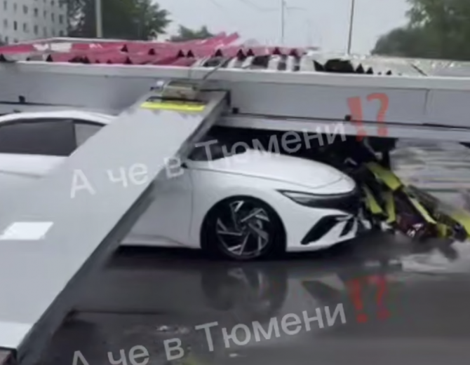 Очевидцы засняли последствия ЧП: гигантская металлическая рама смяла крыши нескольких машин, разбив стёкла и повредив кузова. К счастью, обошлось без пострадавших — в момент падения в автомобилях никого не было.