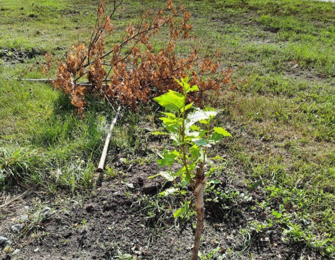 В Тюмени вандалы уничтожили десятки саженцев у школы №92