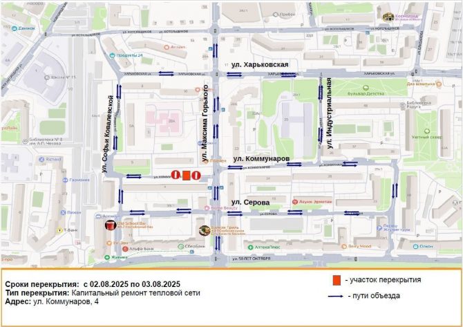 Со 2 по 3 августа в Тюмени будет ограничено движение транспорта по улице Коммунаров в районе дома №4. Ограничение связано с работами по подведению инженерных коммуникаций к новому жилому комплексу. Водителям рекомендуется использовать объездные маршруты по улицам Серова, Максима Горького и Харьковской. Временные неудобства связаны с масштабным строительством многоэтажек в этом районе.